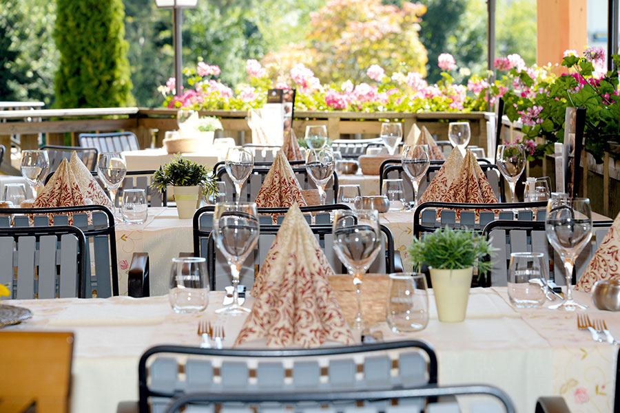 Sie bietet im Sommer eine angenehm warme Atmosphäre bei einem kalten Glace. Wir begrüssen Sie gerne nach einem Spaziergang auf unserer Garten-Terasse im schönen Zuckenriet, wo wir Sie mit saisonalen Spezialitäten verwöhnen.